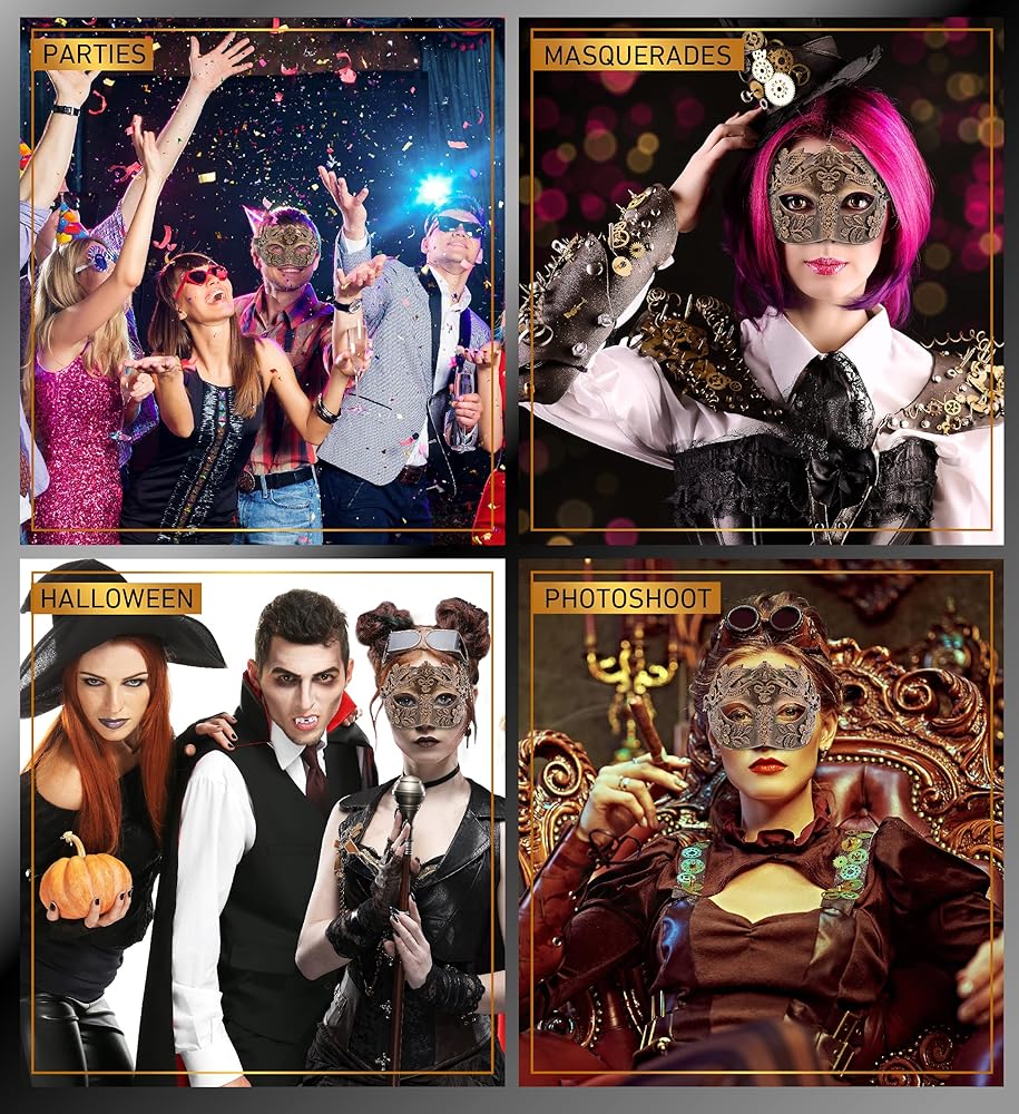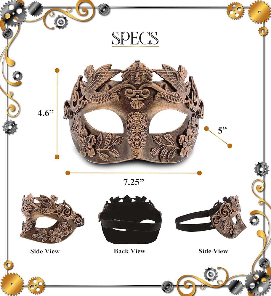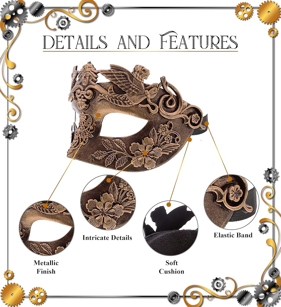 HIGH-QUALITY COPPER BALL MASK FOR ADULT – The masquerade ball mask is a cool costume accessory made of premium quality materials. Crafted with intricately designed touches of baroque details, it creates an essential piece in finishing your Venetian look. Sturdy head accessory for special occasions, intricately made and quite versatile. It's perfect to wear for Halloween, birthday parties, mardi gras events, New Years and more.