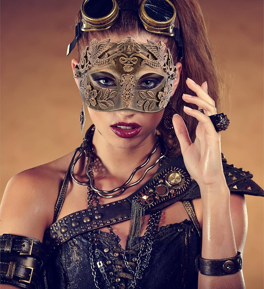 INCLUDED IN THE PURCHASE OF STEAMPUNK MASQUERADE MASK - Includes 1 Copper Masquerade Ball Eye Costume Mask adorned with realistic details and intricate baroque design. A fully decorated ball room themed mask covering the upper half of the face, eyes, and nose. Designed with a durable elastic band, making it easy to wear and remove. The copper masquerade eye mask disguise is a one size accessory that fits most adults.