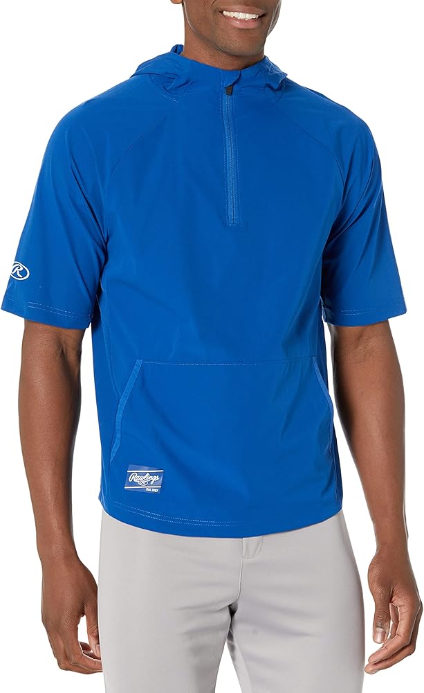 As a part of the Rawlings Color Sync Collection, the short sleeve jacket features an athletic fit made from a comfortable, textured stretch woven fabric. With a large kangaroo pocket, you will have plenty of room to use this as a pocket for your hands, as well as a space to safely store other items. These jackets are machine washable and have a, athletic style fitted hood. Adult sizes are available in SMALL to 3XL. Youth sizes are available in SMALL to XL.