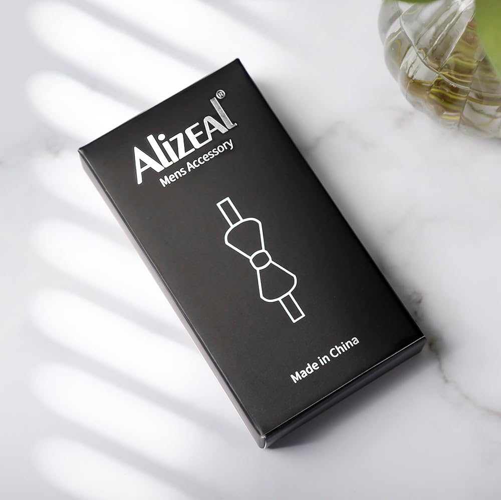 Package includes: 1*Pre-tied Bow Tie (4.7*2.5inches/12*6.5cm) , 1*Pocket Square (9.5*9.5inches/24*24cm) and a pair of Cufflinks in a gift box