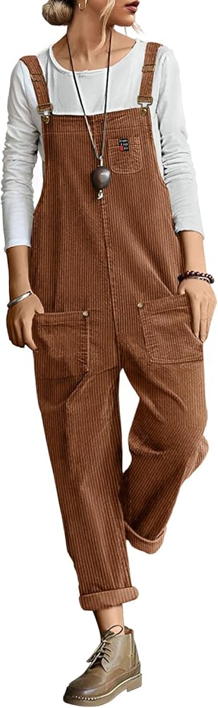 Cozy jumpsuits for women are made of soft, textured corduroy with vertical pinstripes that are both stylish and figure flattering. Featuring wrinkle free, durable, and slightly stretchy, they are great choice for lounging all day in during the fall and winter months.