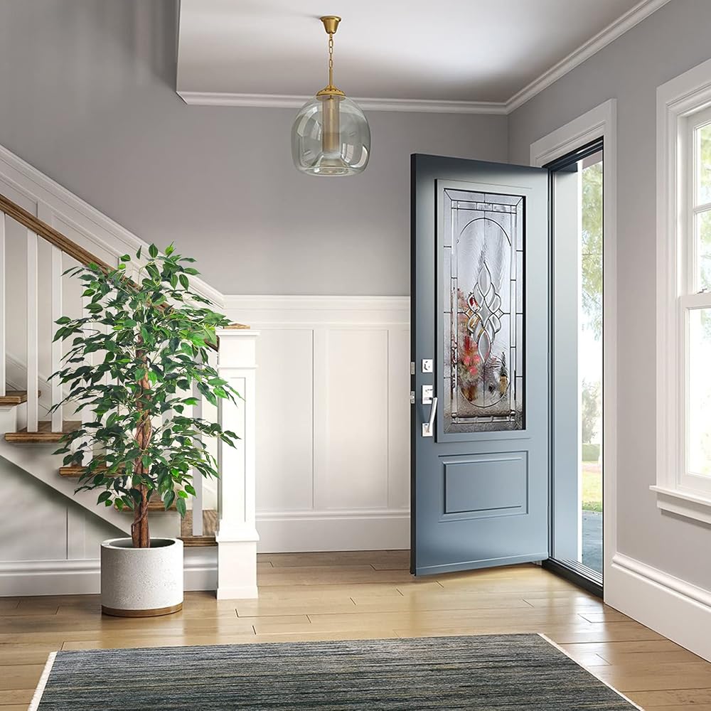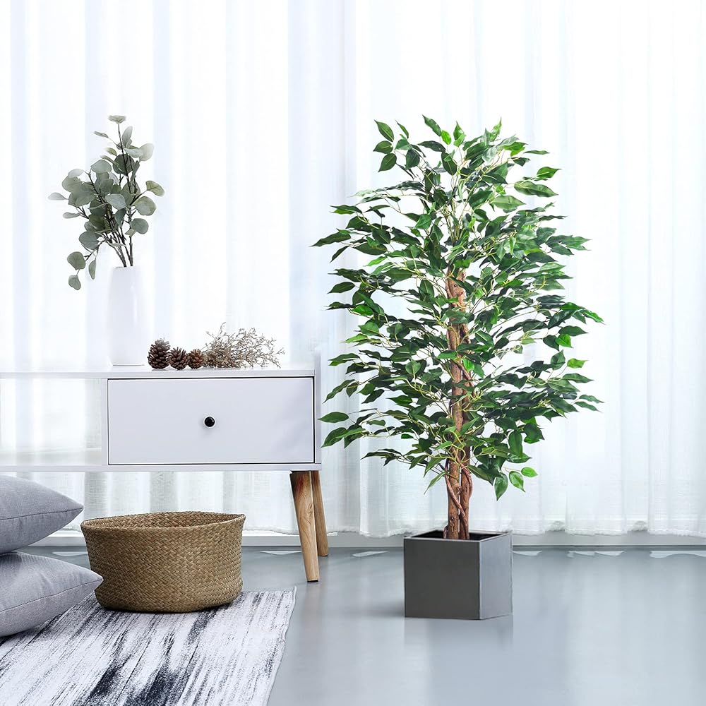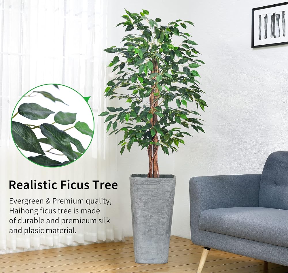 【Warm Reminder】Due to the transportation package, ficus tree leaves may be squeezed. the leaves of these potted faux tree can be adjusted, when you receive them, please comb the leaves to make the ficus tree artificial look plump and lush, and then put them where you need.