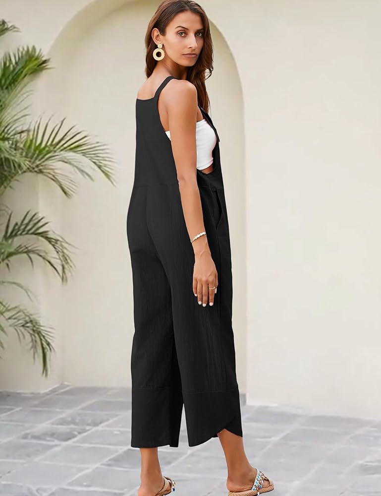 Women's solid loose cotton linen jumpsuit casual overalls baggy pants jumper rompers,super soft and comfortable to your skin