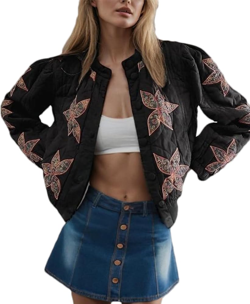 Design:This quinn quilted jackets is adorned with vibrant leaf prints,button closure,fully lined,long sleeve with elasticated cuffs,2 side pockets can keep your card,phone and key,elasticated hem style