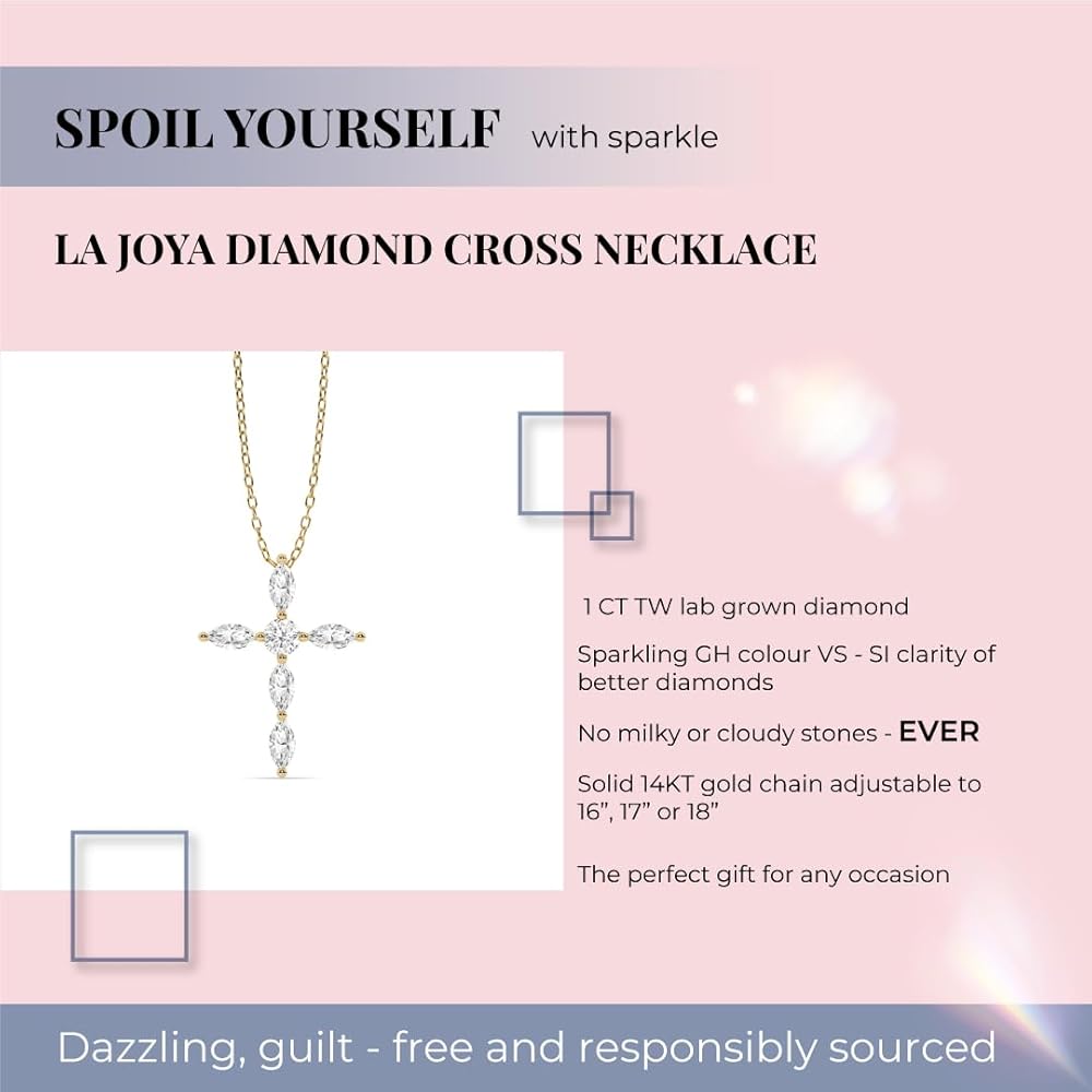 NOTES FROM OUR STYLIST This dazzling diamond cross pendant beautifully blends faith and high fashion. Crafted in solid gold, its minimalist design showcases the brilliance of marquise-shaped lab-grown diamonds. A timeless classic that transcends generations and beliefs, this cross necklace is a must-have accessory for any jewelry collection. IDEAL FOR GIFTING Searching for the perfect gift for a loved one? This exquisite cross pendant is a meaningful and stylish choice for any occasion. Whether it's a birthday, anniversary, holiday, or simply a gesture of appreciation, this sparkling treasure is sure to be cherished. While many mined diamonds are conflict-free, tracing their origins is nearly impossible. The Kimberley Process, designed to prevent atrocities linked to the diamond trade, has faced challenges. By choosing lab-grown diamonds, you contribute to a more ethical and sustainable jewelry industry. These diamonds are created using cutting-edge technology that replicates the natural diamond growing process, resulting in stones that are just as brilliant and beautiful – without the ethical concerns. You can enjoy exceptional sparkle without compromising your values, and without resorting to substitutes like moissanite or cubic zirconia that simply don't measure up to a diamond's brilliance. LET YOUR INNER LIGHT SHINE THROUGH This vintage-inspired yellow gold band is meticulously assessed and authenticated by expert gemologists from independent laboratories. Each ring comes with a unique certificate that you can easily verify online, guaranteeing its quality and authenticity.