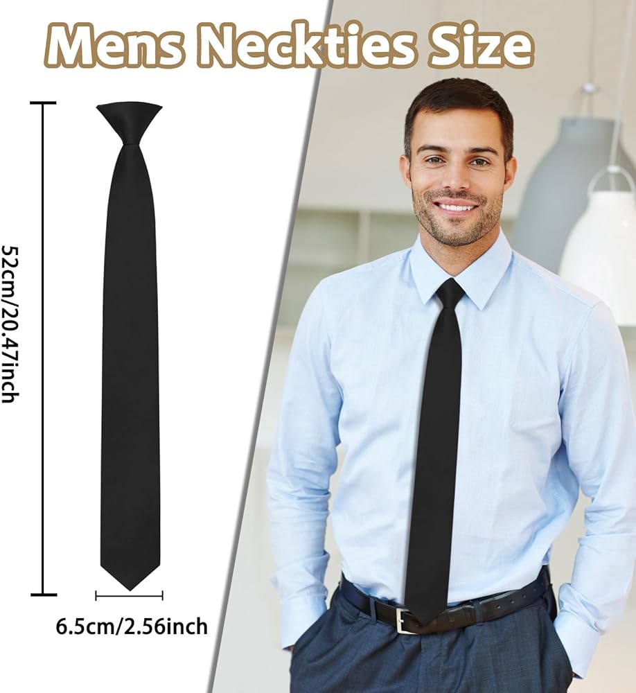 Mens Tie Size: The pretied ties for men are 52cm (20 inches) long, and 6.5 cm (2.56 inches) wide; One size fits most men/teenagers/big boys; The men's neckties adds a touch of elegance and sophistication to any outfit
