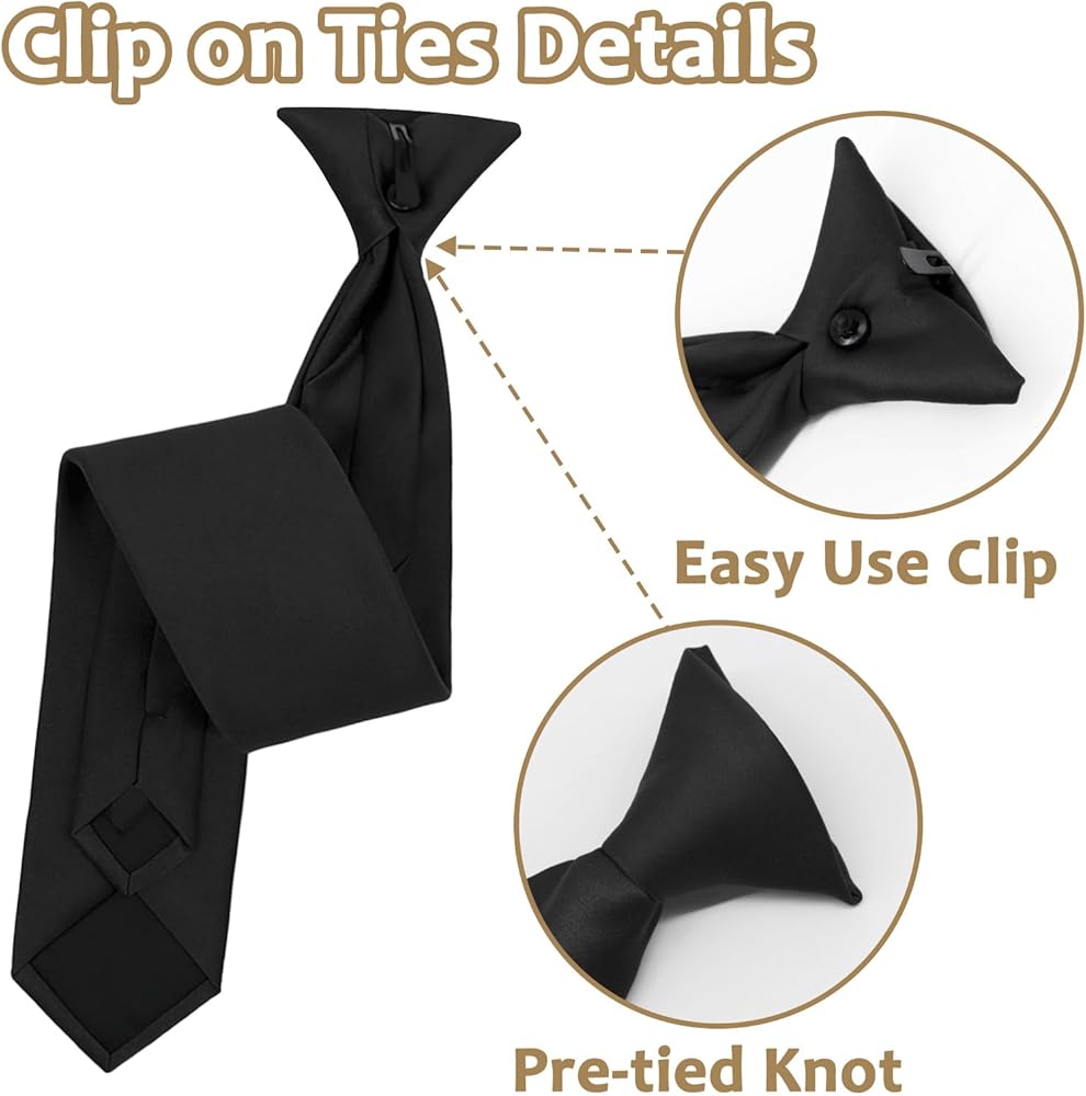 Polyester Silk Ties For Men: This mens clip on tie is made of polyester, which is well-made, smooth and durable; The men's tie has a full half Windsor knot, can be easily paired with any outfit such as shirts, suits, tuxedos and more