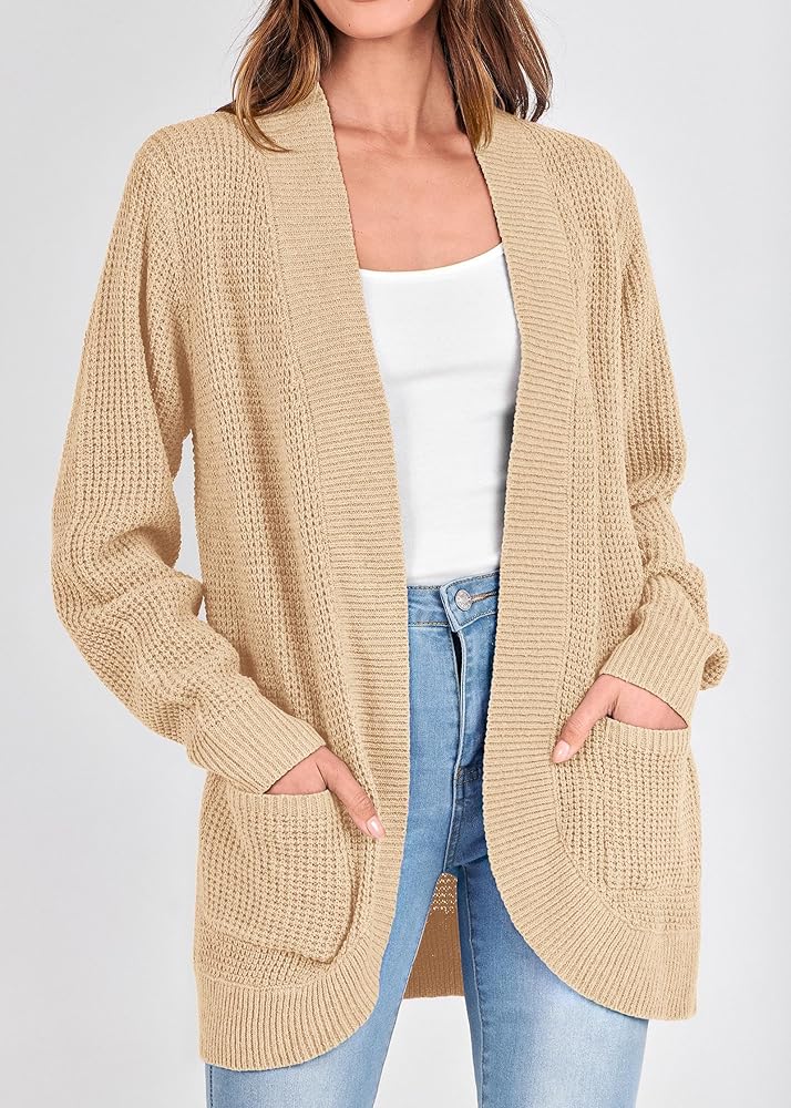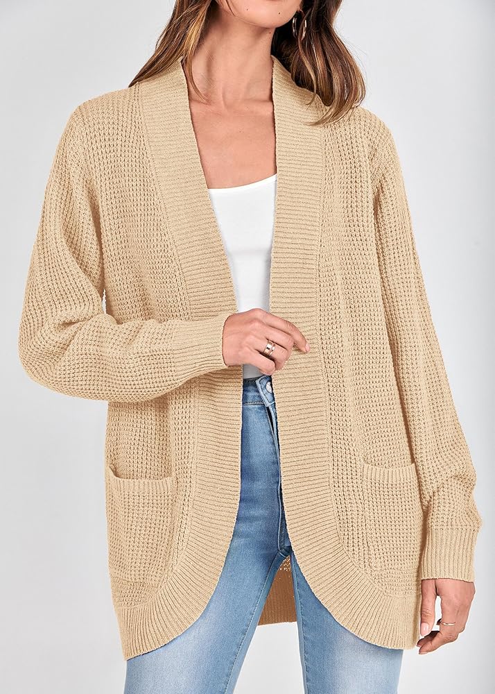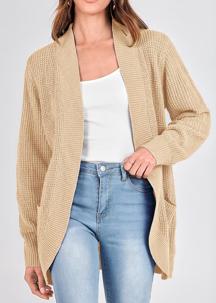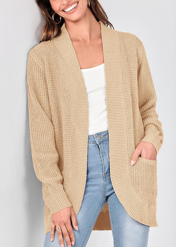 *Size Guide: S=US 4-6, M=US 8-10, L=US 12-14, XL=US 16. Cardigan Sweaters For Women/ Knit Cardigans For Women/ Long Sweater Cardigan Women/ Open Front Knitted Cardigan/ Chunky Cardigans For Women/ Waffle Knit Cardigans For Women/ Solid Color/ Ribbed Cuffs/ Warm And Cozy/ Fall Winter Cardigans.