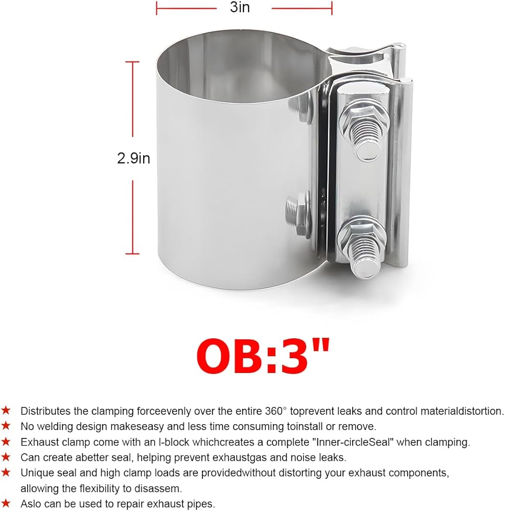 【Durable Material】: Our product is made from stainless steel which is highly resistant to rust and corrosion, making it ideal for use in the exhaust system, which is constantly faced with different conditions. Stainless steel can withstand the high temperatures generated by the exhaust system, ensuring that the clamp maintains its structural integrity.