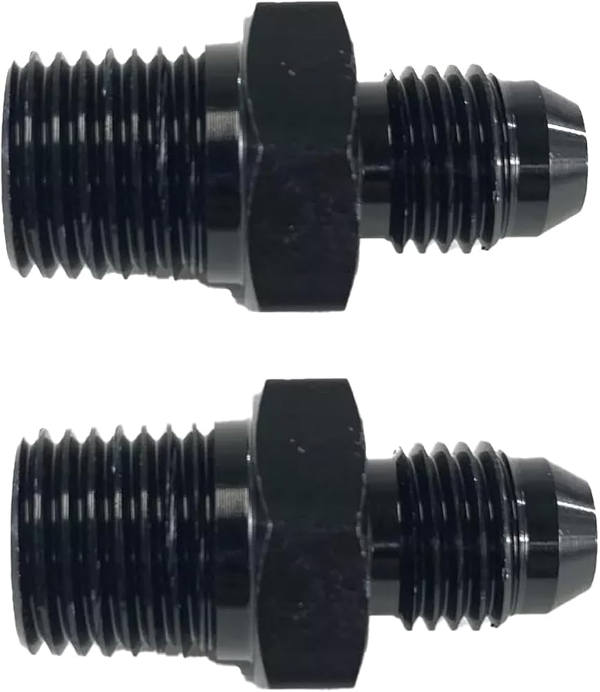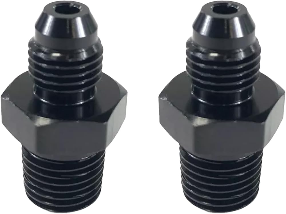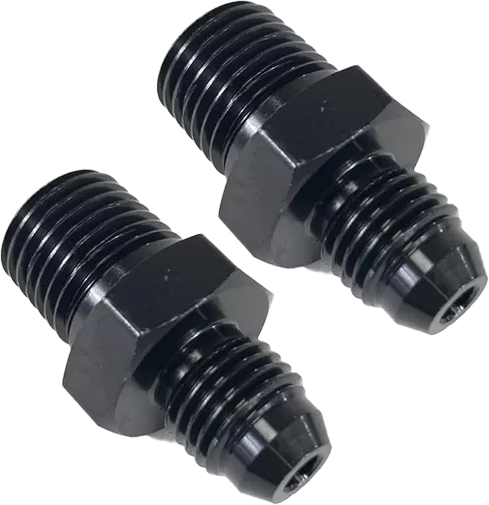 4AN Male Flare to 1/4'' NPT Male Hose Pipe Fitting Adapter Union Connector Aluminum Straight Black Anodized 2PCS
