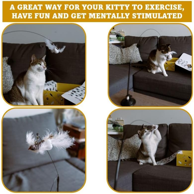 HEALTH BENEFITS: The sound of the bell and real bird feathers will stimulate a cat's hunting instincts, which can help your cat stay active and mentally stimulated. Playing with this toy can help release excess energy and reduce stress, leading to a longer and healthier life.