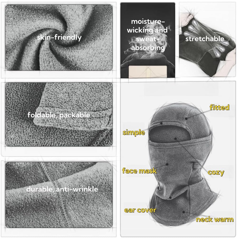 Versatile winter hood hat: face mask, ear cover, neck warm, full head wrap windproof lightweight solid balaclava