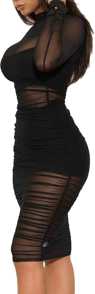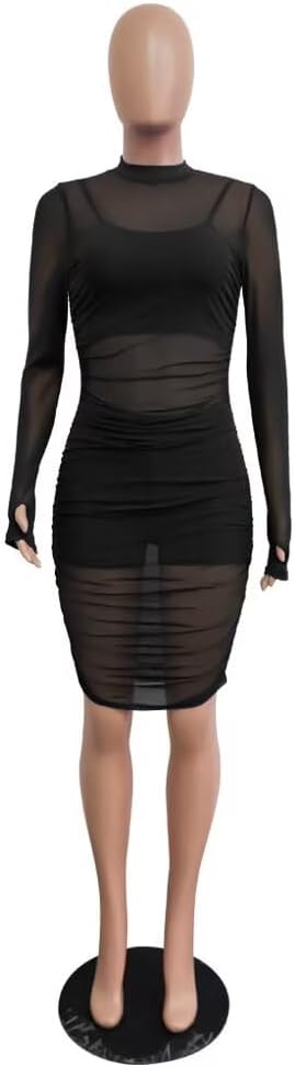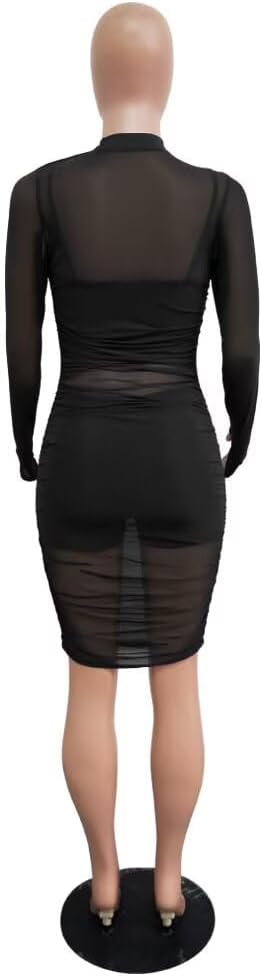 SEE THROUGH DRESS FEATURE - Bodycon long dress, sheer mesh see through dress, long sleeve party dress, stretchy long dress