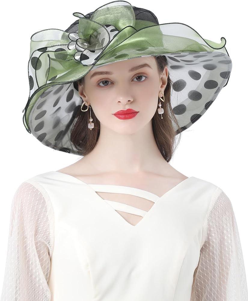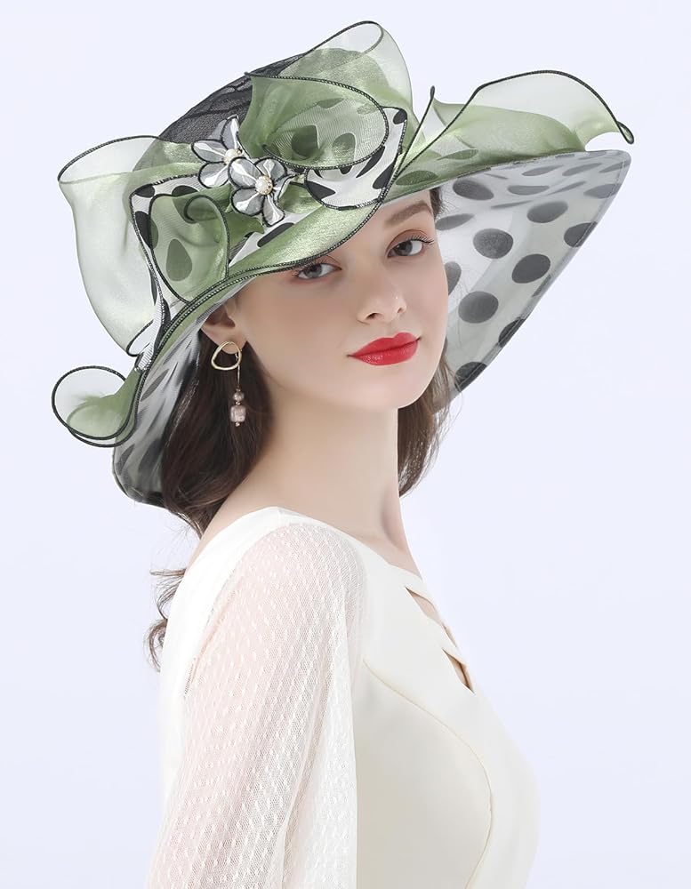 Decorate with an outstanding blooming organdy flower, adds the elegant of the whole hat, beautiful but not overwhelmed, possess ruffled trim,