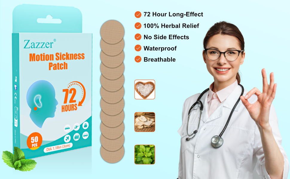 رقعات دوار الحركة 50 ورقة - رقعات دوار البحر للرحلات البحرية - الدوخة والدوار وتخفيف الغثيان، لسفن الرحلات البحرية والطائرات والسيارات وغير النعاس وأساسيات السفر وأساسيات الرحلات البحرية