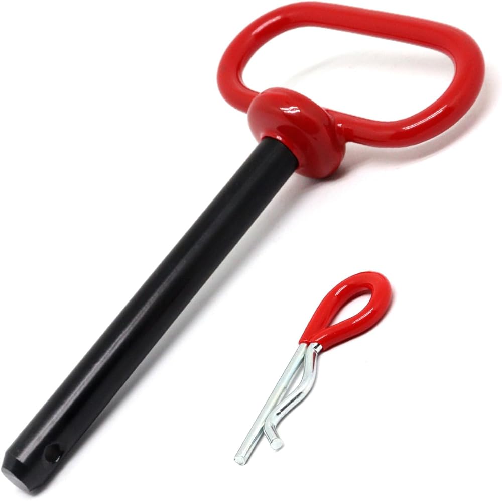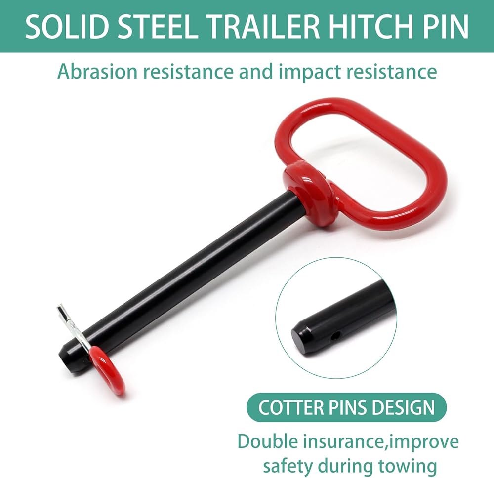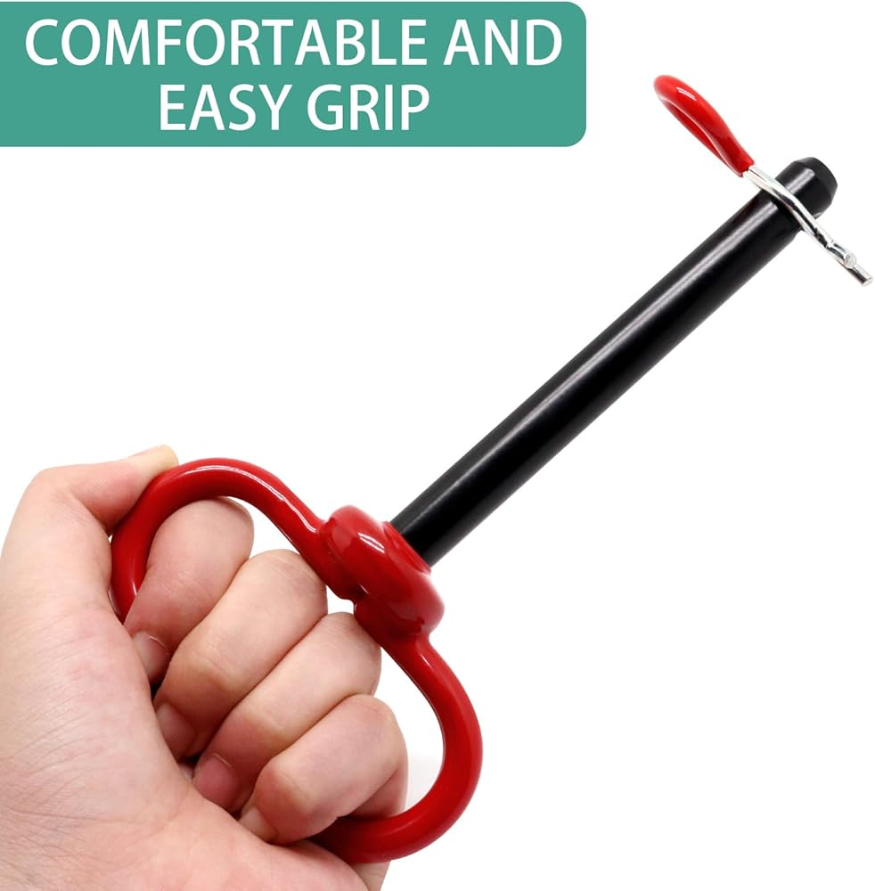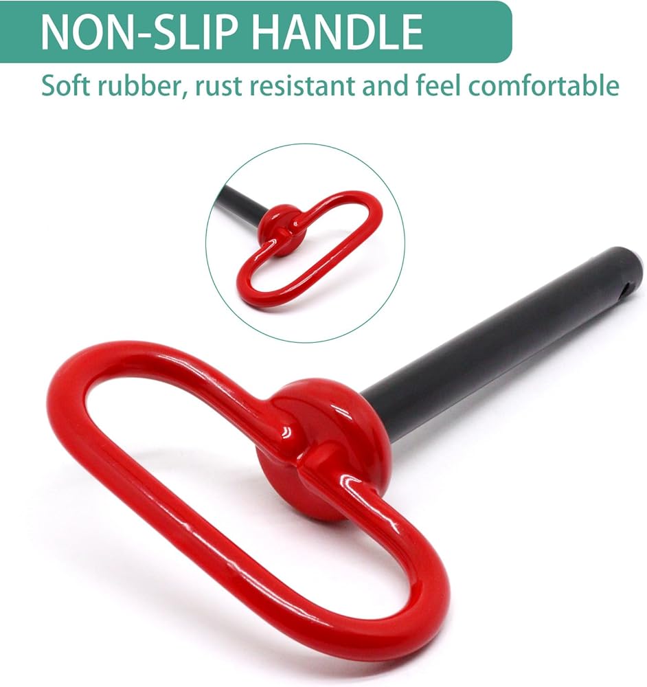 Strong Material: The hitch pin 5/8 inch made from thickened solid steel with black coating, is durable, abrasion resistant and impact resistant. Covered red rubber layer, the red handle ensures and enhances the function of rust resistance.