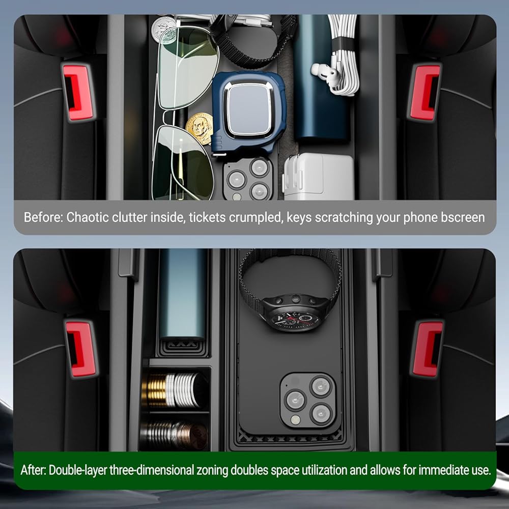 Multiple Function:The storage boxes replacement for Ford Maverick can make your car more clean and tidy.They can expand the storage space of the console.You could put mobile phones, tissues, sunglasses, keys, water glasses and other common objects in it.While the car is moving, the items will not slide out and will not make noise.