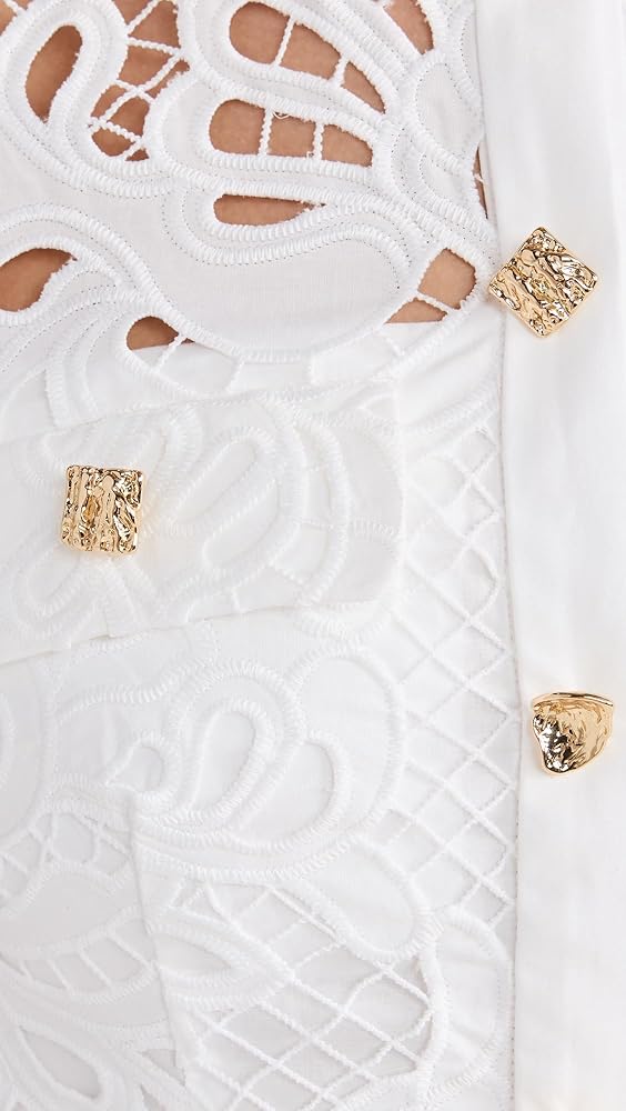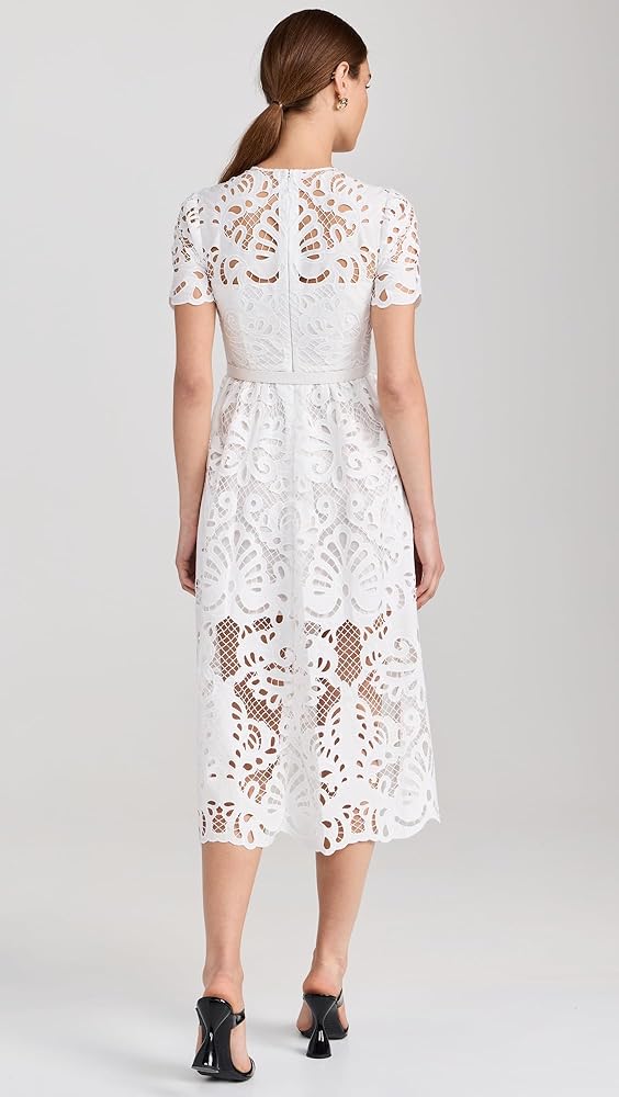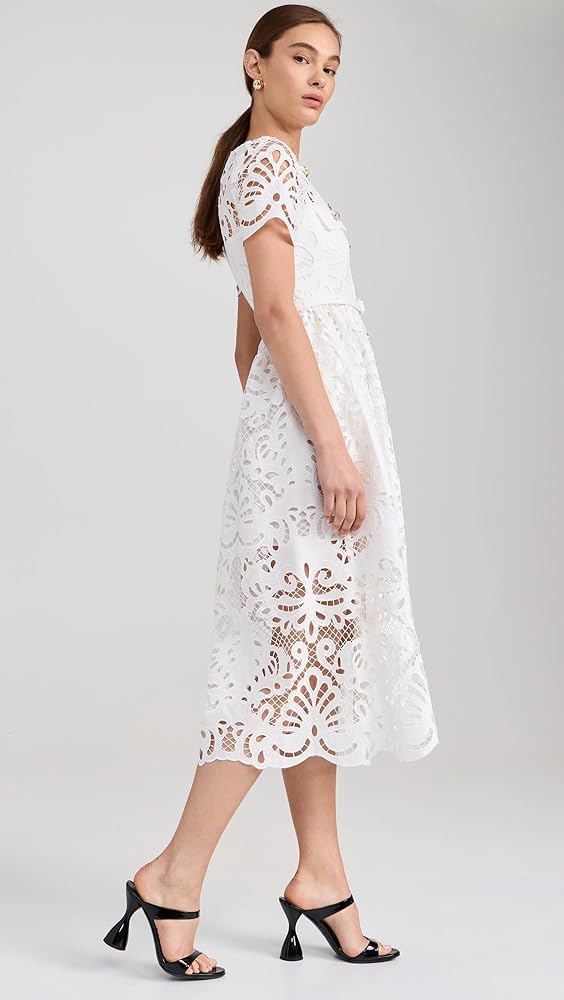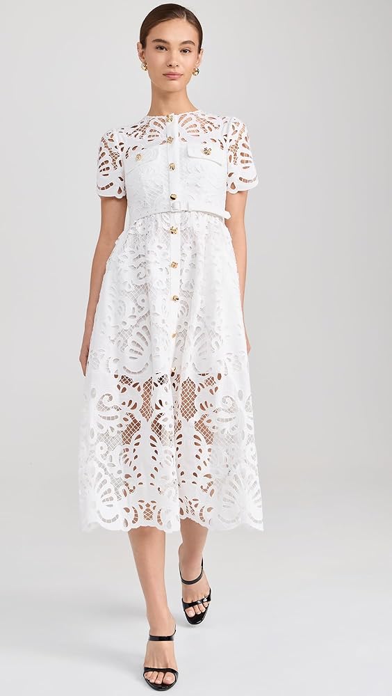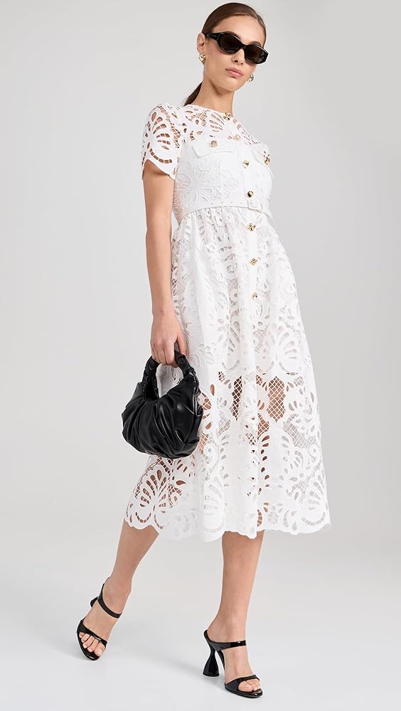 Self Portrait Women's White Cotton Lace Button Midi Dress