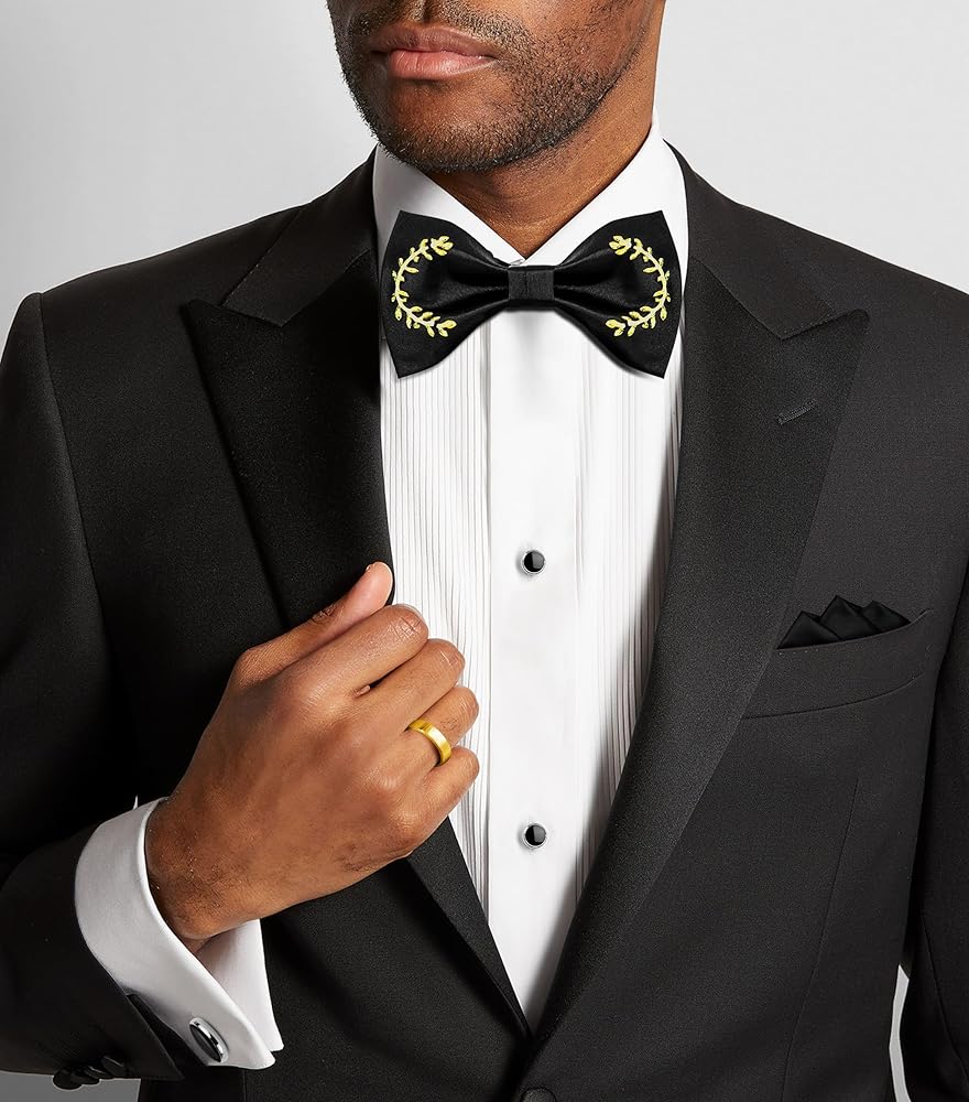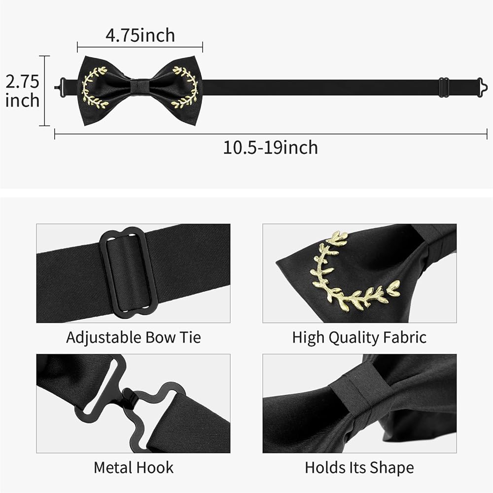 【The Right Color Choice】White and black bow ties are a great choice to wear with a suit at a wedding, or for an important business event or formal occasion. Pair a black bow tie with black metal cufflinks to show off your gentlemanly style. It can also look great with black, white, navy blue, green, and red suits.