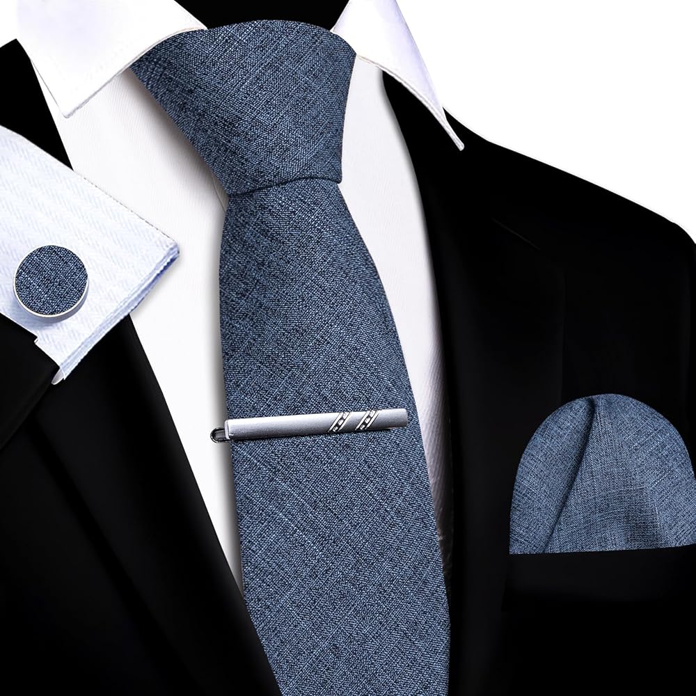 5PCS Pack: Extra long necktie+pocket square+tie clip+cufflinks+gift box. This Men's Tie Set is a sweet gift for you and your family and friends. Such as Anniversary, Birthday, Father's Day, Christmas, Quinceanera, New Year, Valentine's day. Solve your struggle to choose holiday presents.