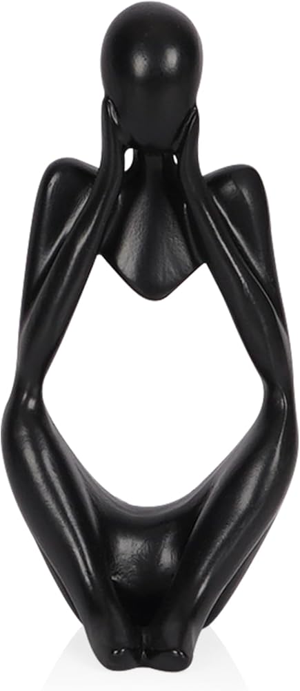 Sandstone Resin Thinker Style Abstract Sculpture Statue Collectible Figurines Home Office Bookshelf Desktop Decor (Small Black, Focus)
