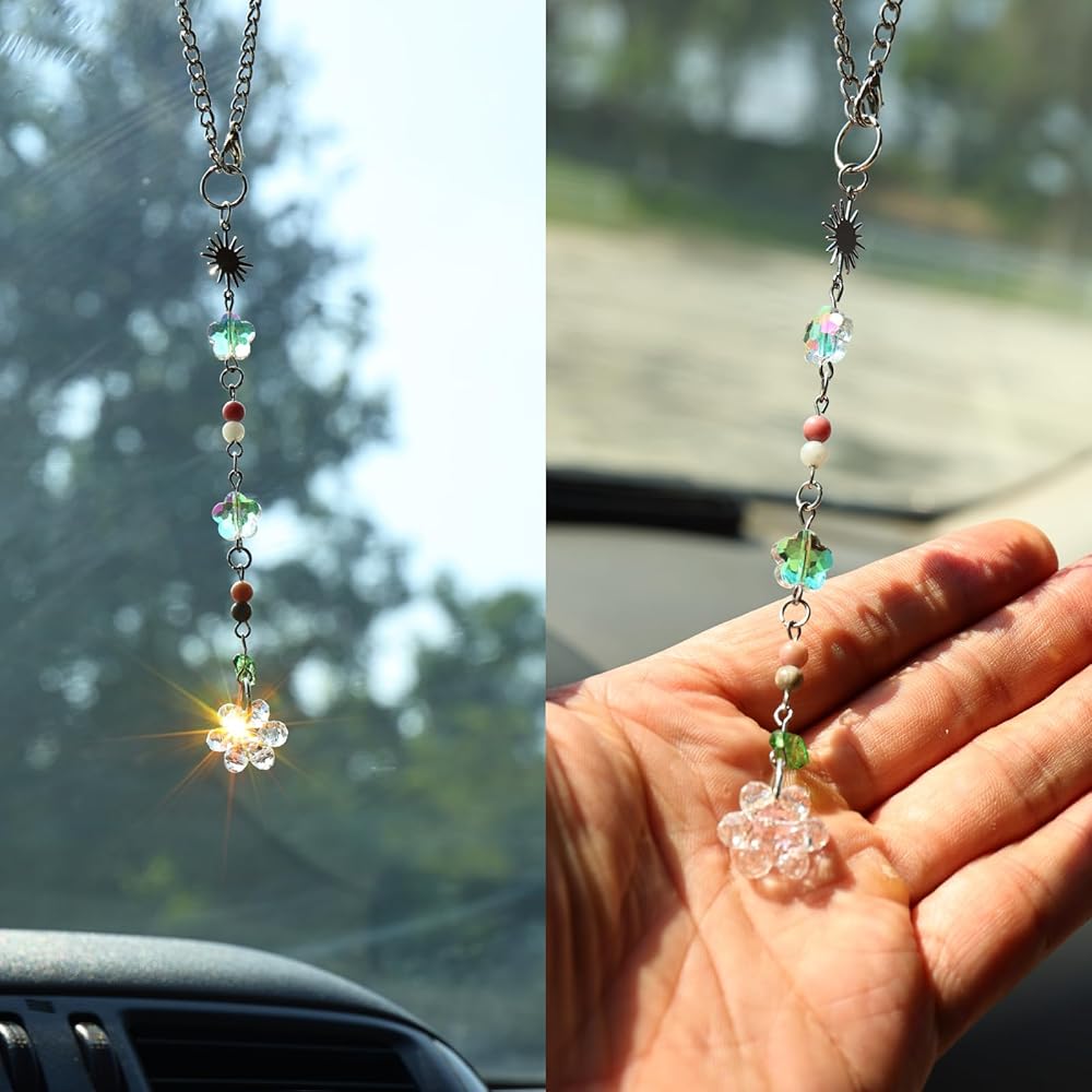 💕Crafted with Precision: This unique car charm features a beautiful crystal flower and zebra stone beads, adding a touch of elegance to your car's interior.Made with zebra stone, it's not only beautiful, but also believed to have grounding and balancing properties.Every component ensures that the charm remains intact, functional, and aesthetically pleasing for an extended period. Enjoy the vibrant burst of rays across many drives.