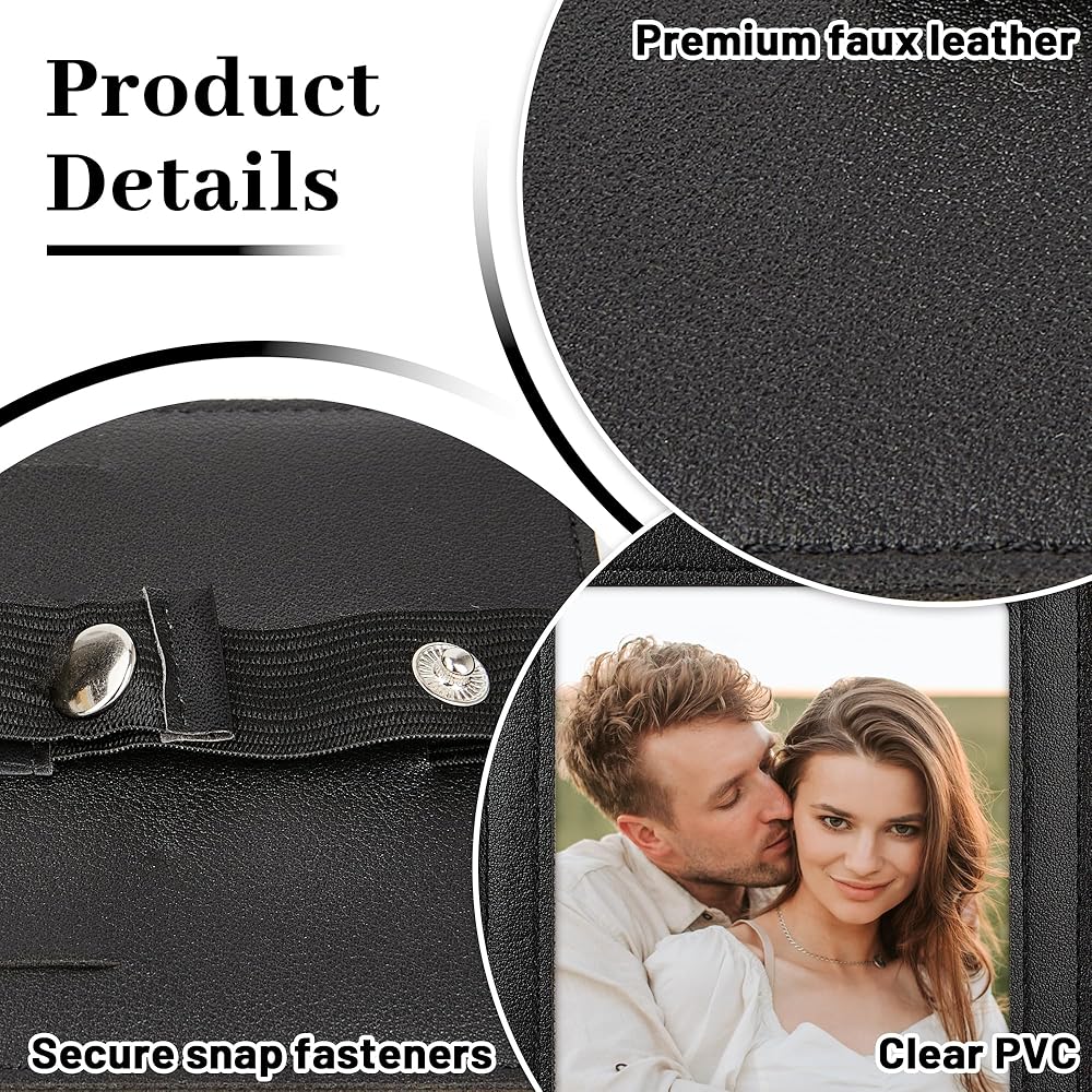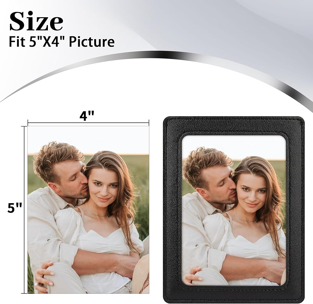 PREMIUM QUALITY MATERIAL: This car visor photo frame is made of high quality soft PU leather and high transparent PVC. And comes with a hard cardboard to support the photo shape.