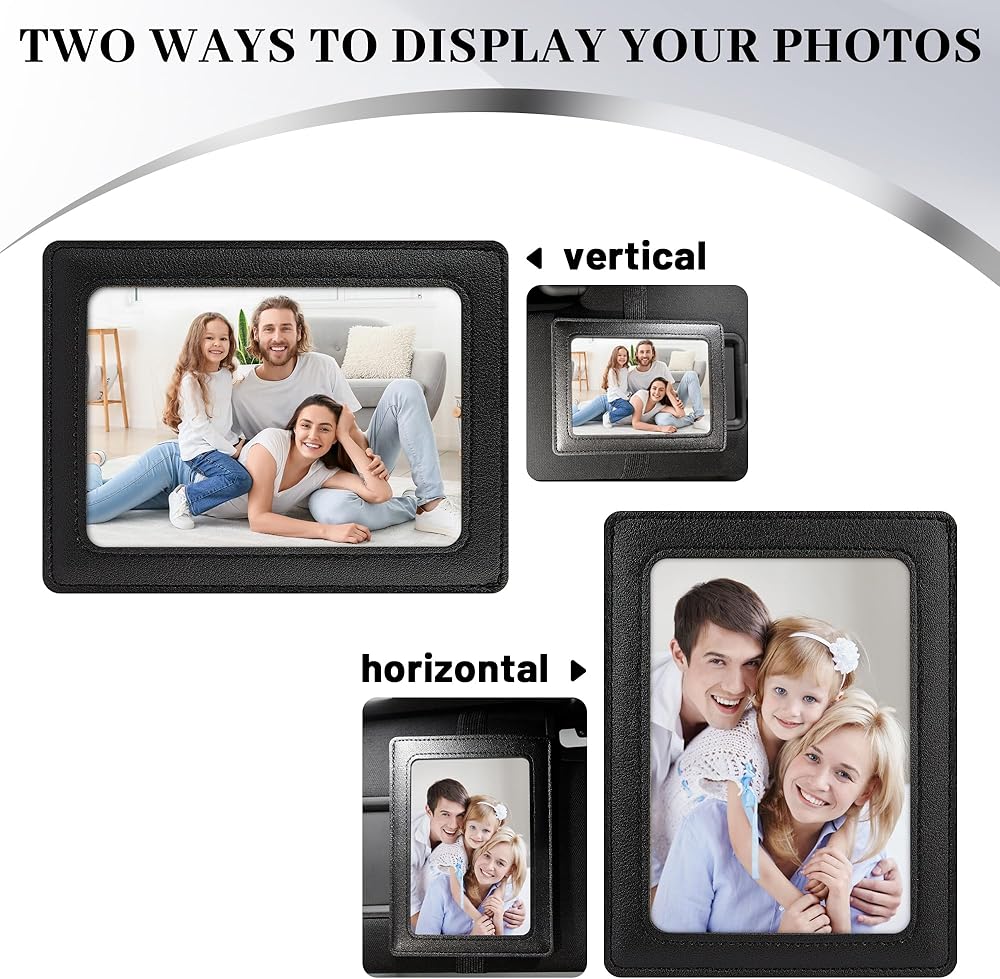 Car Picture Holder Artificial Leather Picture Frames Car Visor Clip Fits 5-inch Photo Frame Car Accessories- Displays Photographs Both Vertically and Horizontally Christmas Gifts (Black)