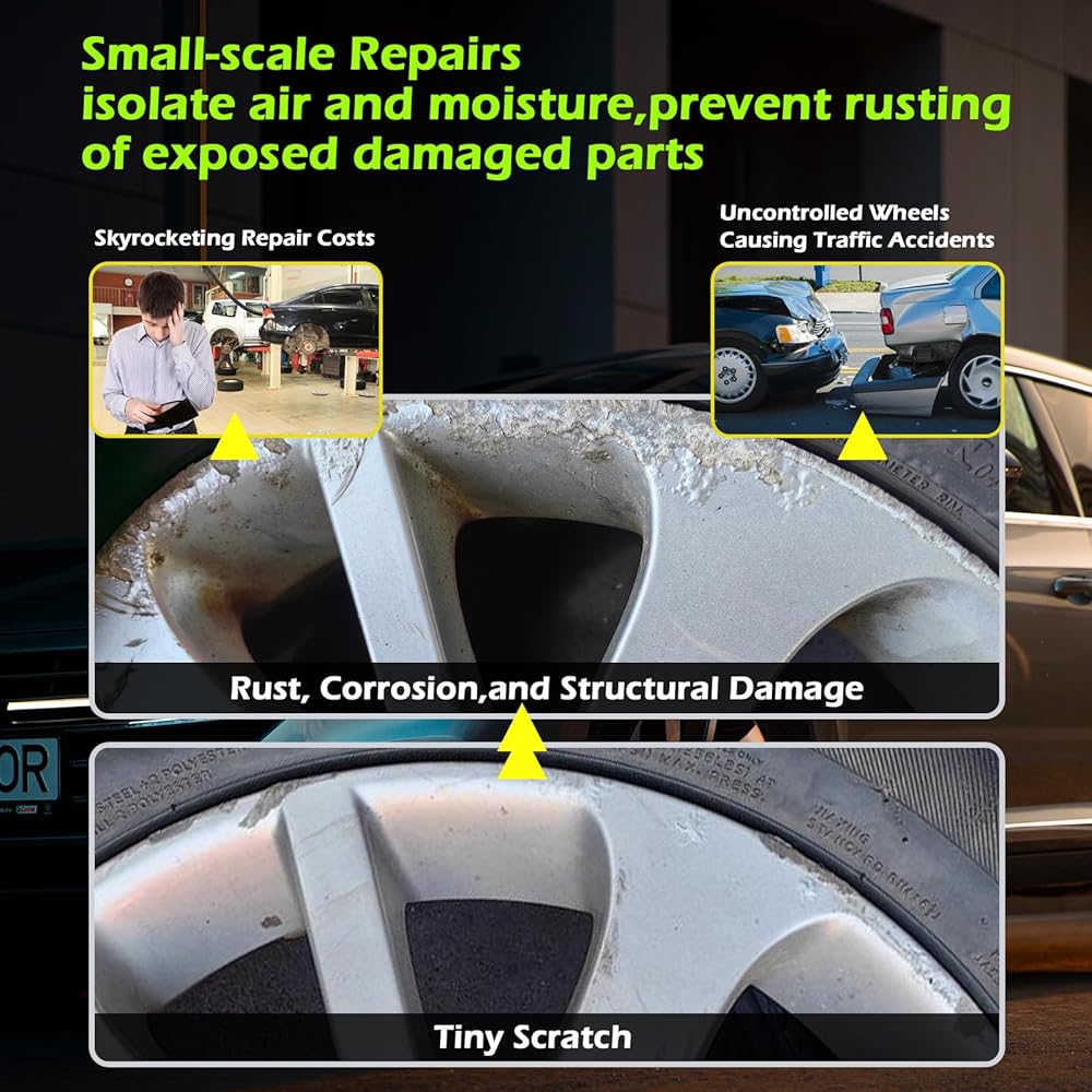 Wheel Rim Paint Repair:This rim scratch repair paint is better than paint pens, covers up minor rim scratches with very little effort,makes the rim look like new. You can do the restoration yourself without the need for a professional.