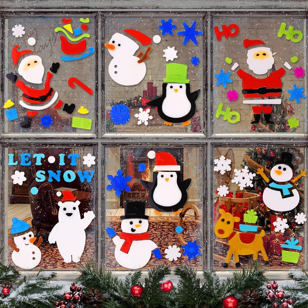 Christmas design: Halloween gel stickers come with christmas theme, including ,Santa Claus Snowman Snowflake reindeer penguin suitable for the decoration of the festival,