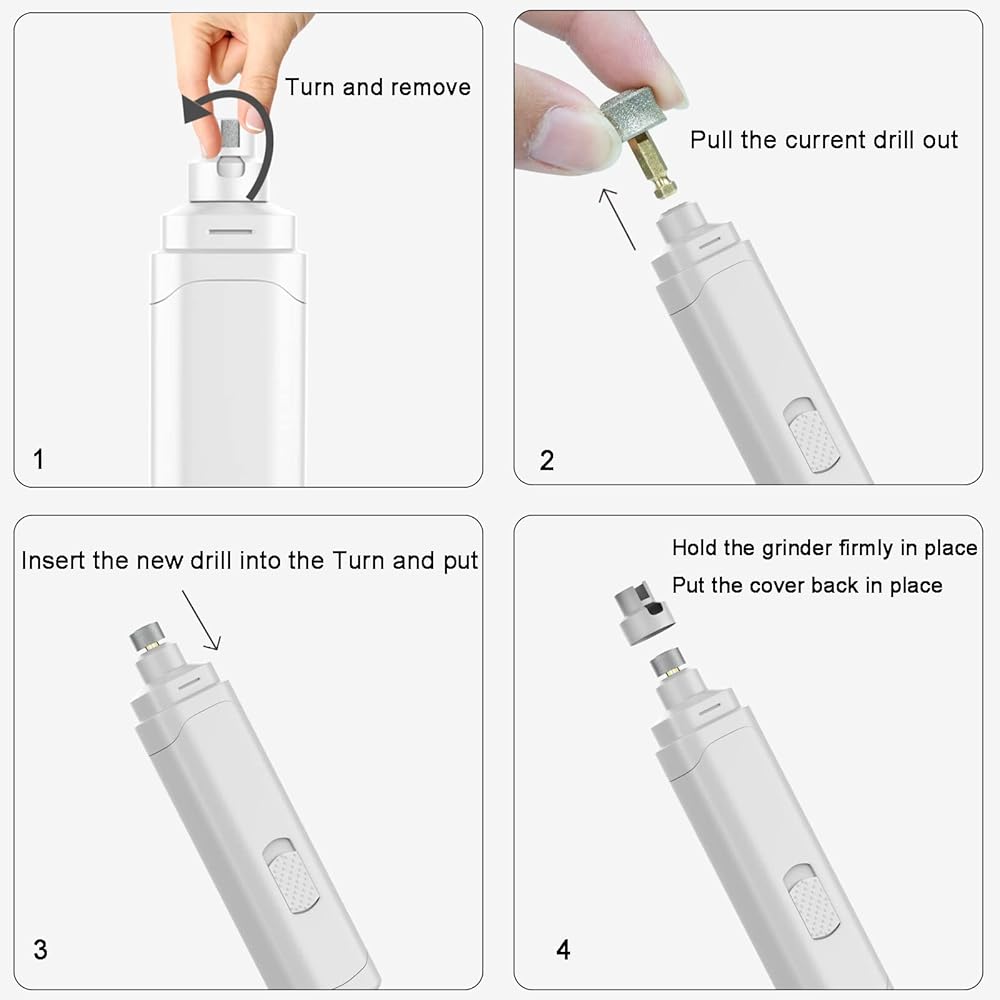 Easy to use; to replace the dog nail grinder bit, simply pull out the old one and push in the new.With tighter leading bit this item would ensure secure installation with the machine. And when you install the head you need push hard with more power than usual.