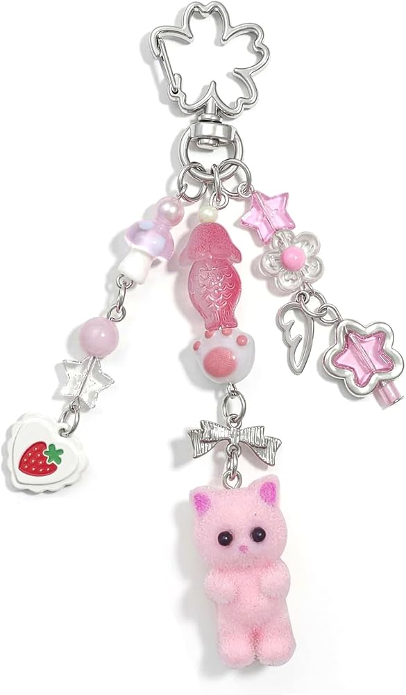 Charming Design: This adorable cat keychain features a meticulously crafted fuzzy cat pendant adorned with a heart-shaped bow, embodying a playful and whimsical spirit. The combination of vibrant colors and soft textures adds a delightful touch that will stand out wherever it's attached.