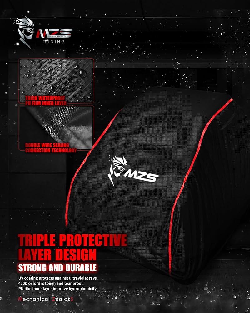 ALL ROUND PROTECT - The stitching of the entire vehicle cover adopts double-line sealing connection technology, and special dual PU waterproof layer and UV coating are added to the inside and outside of the fabric, improve hydrophobicity and fade resistance, effectively resist all kinds of bad weather