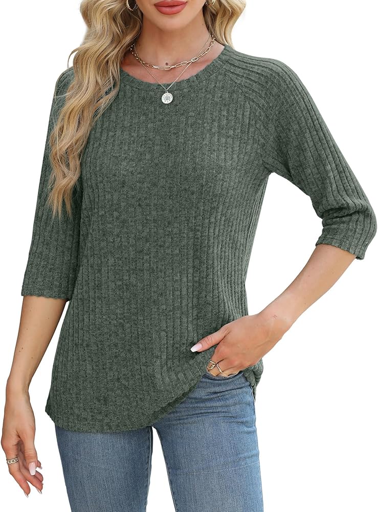 JomeDesign Sweaters for Women 3/4 Sleeve Shirts Crew Neck Sweatshirts Loose Casual Blouses Fashion Tops