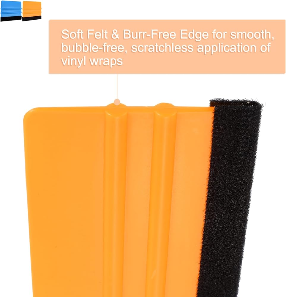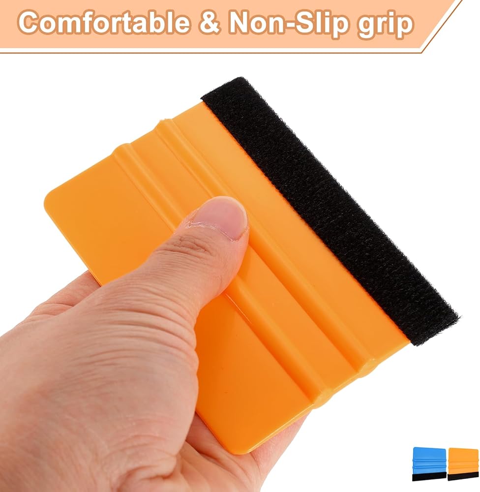 • Features - Our vinyl wrap squeegee features a soft felt edge designed to glide effortlessly over vinyl surfaces, ensuring a smooth application every time. Designed for comfort and control, the handle improves efficiency during extended use, allowing for precision work even on large-scale projects.