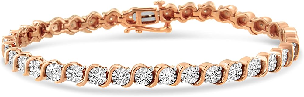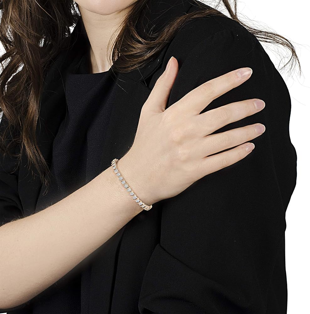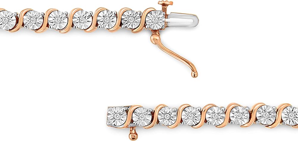STUNNING NATURAL DIAMONDS – Everyone loves a little luxury in their life! This tennis link bracelet will make an impression. This 7” bracelet features sparkly white diamonds in faceted bezel settings that give the illusion of larger stones ensconced in bypass style waves of 925 sterling silver. You can grab this bracelet in three different color options: 14kt rose gold plated silver, 14kt yellow gold plated silver, or plain sterling silver. This bracelet is sure to become a jewelry staple.