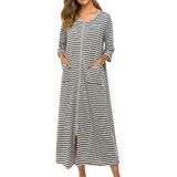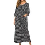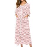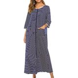 【FASHION&ELEGANT】--- 3/41 Short Sleeve Womens Housecoat Loungewear designed with patchwork two sides pockets, front-zipper style, H-shape cut, stripe pattern, makes the Nightgwon more fashionable and elegant.
