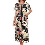 【SUITABLE FOR ANYBODY】--- Zipper Robes for Women Plus Size can fit everyone easily, never too restrictive or baggy. Full length loungewear nightgown designed to be simple and trendy, yet super soft ,comfortable to wear. Half sleeve duster housecoat that is long to the calves ,which is perfect for all season, it will bring you a satisfied and comfortable and lazy home experience.