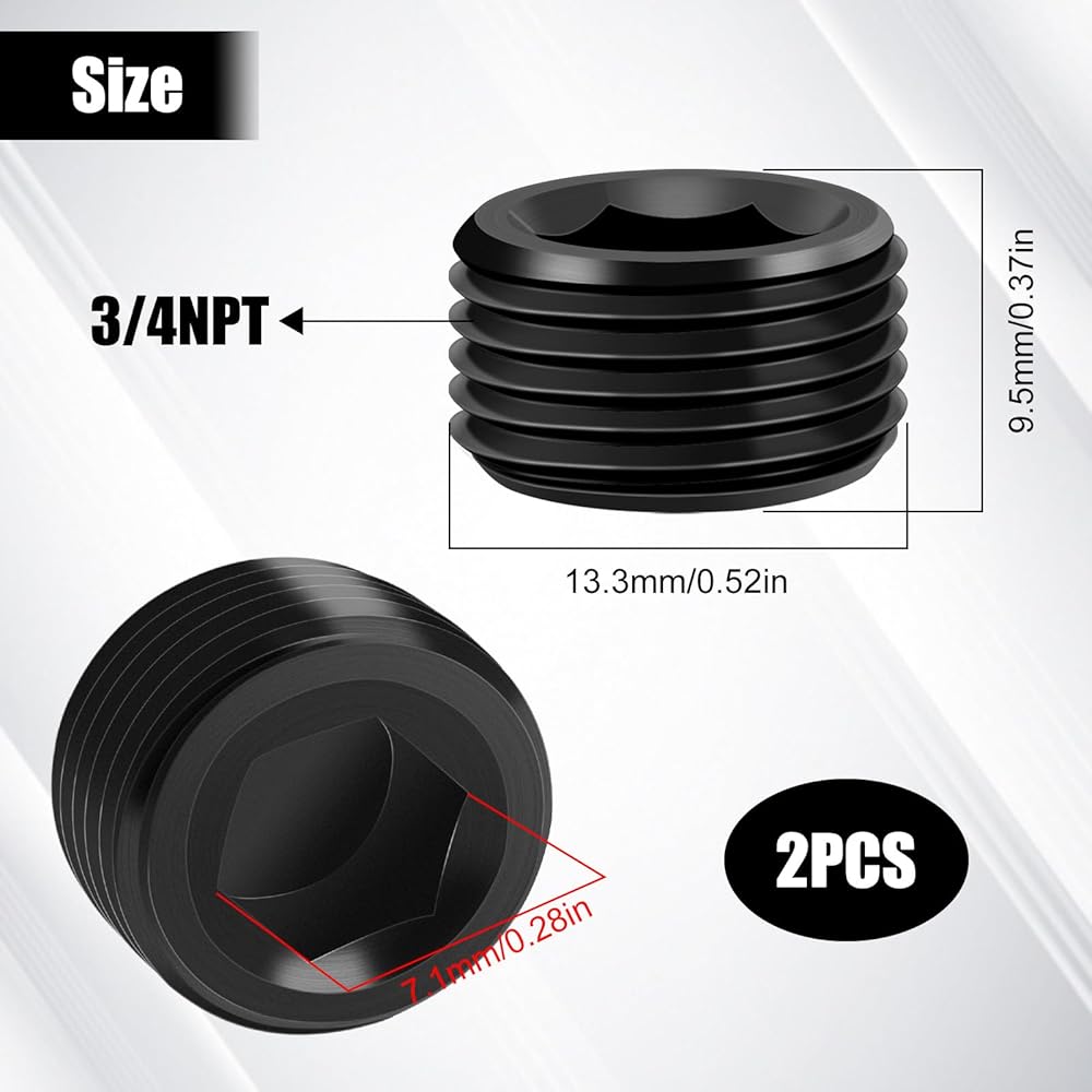 2PCS 3/4 NPT Male Thread Allen Head Hex Socket Pipe Plug Fitting, Black Anodized Aluminum Hard Adapter, Automotive Accessories Suitable for Vehicle Fuel Oil Line End Modification