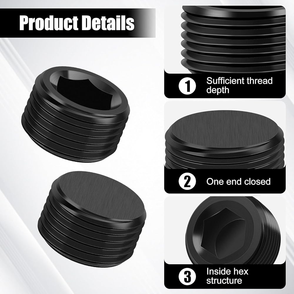【Scope of Application】These npt male thread plug fitting are ideal for installed at exposed or unused hole for preventing leakage of fluids into exposed areas and prevent dirt and debris from entering threaded hose fittings and adapters. Great for blocking off intake manifold water ports, water pump ports, water temp and oil sender holes, engine block, etc