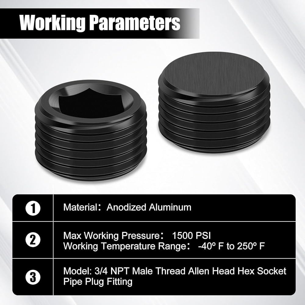 【High Precision Size】Our adapter products are made using high-precision processing technology. The male thread allen head hex socket plug is a standard 3/4 NPT size that can fit perfectly with other parts.The inside is a hex structure. You can easily install it with a hex wrench.