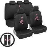 BDK Pink Butterflies Car Seat Covers for Women, Full Set with Steering Wheel Cover and Seat Belt Pads – Front and Rear Covers with Matching Embroidered Accessories, Fits Most Car Truck Van SUV
