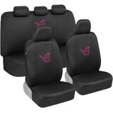 BDK Pink Butterflies Car Seat Covers Full Set with Steering Wheel Cover and Seat Belt Pads – Front and Rear Covers with Matching Embroidered Accessories, Universal Fit for Cars Trucks Vans SUVs