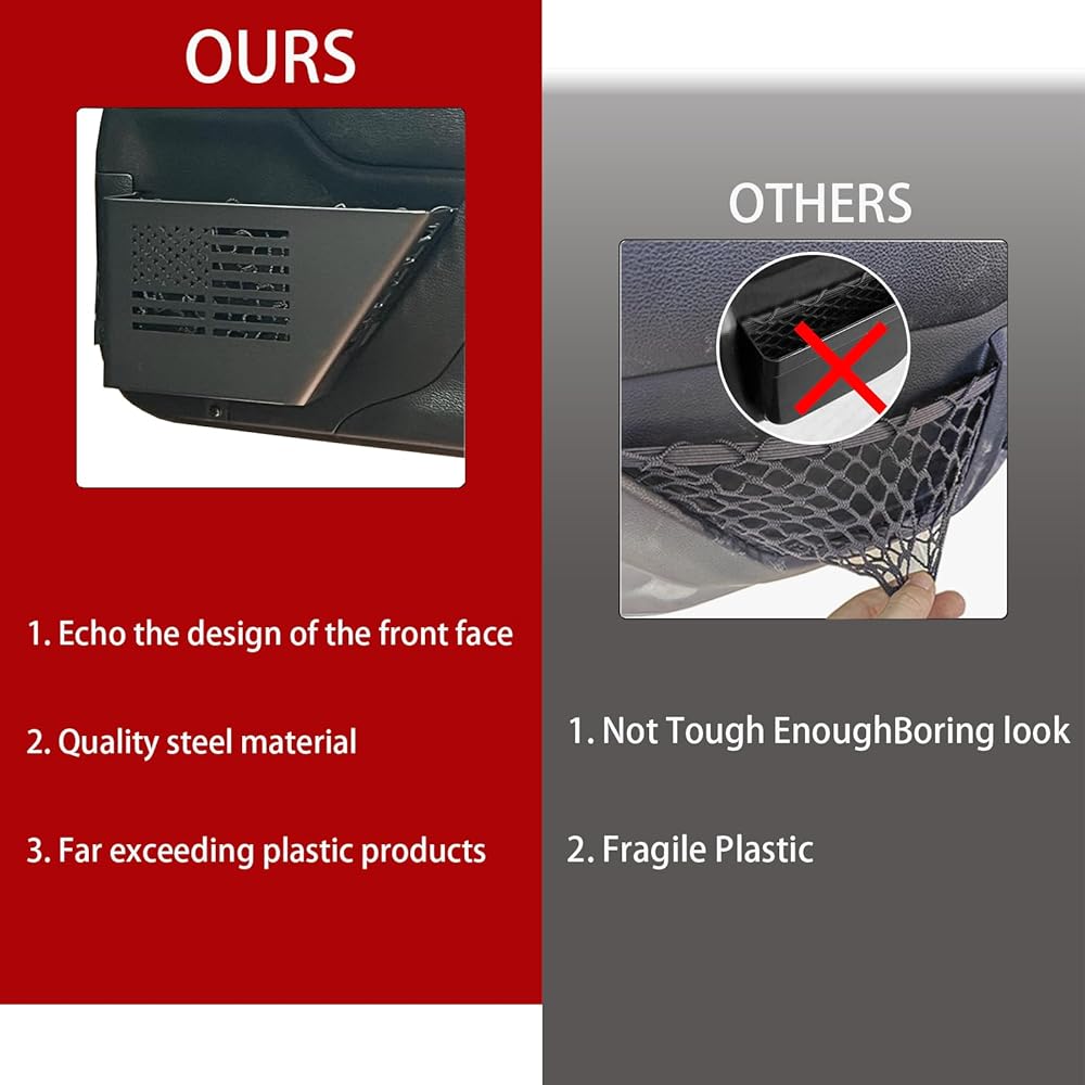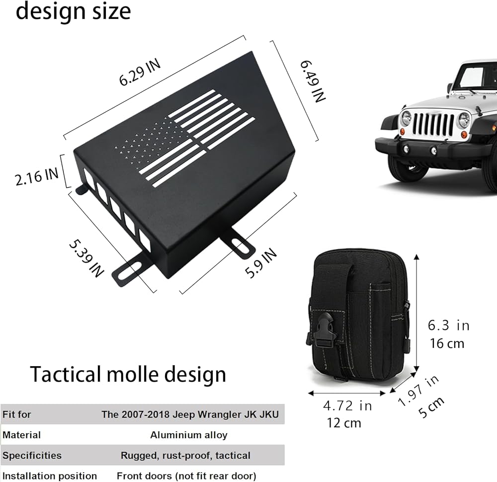 Fitment: JK door storage are designed for 2007-2018 Jeep Wrangler JK 2/4 doors.