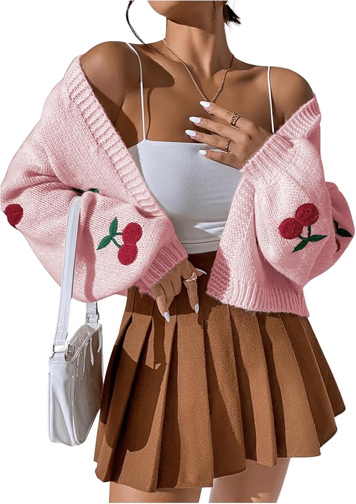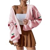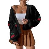 - Casual cardigan for women, striped print, colorblock, cable knit, drop shoulder, long sleeve, open front, loose fit