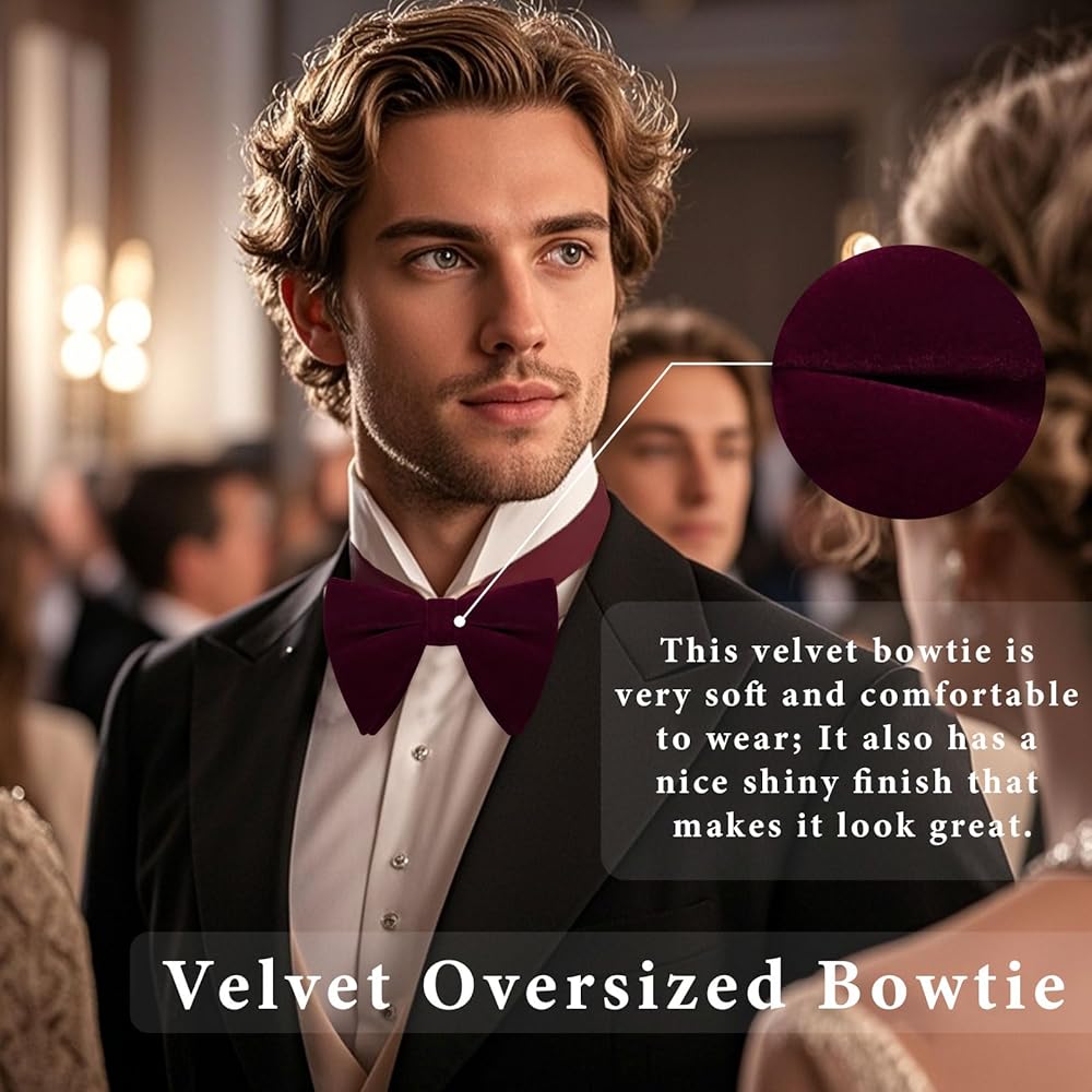 Velvet Bow Ties for Men: The velvet oversized bowtie is very soft to the touch, offering a pleasant wearing experience to you; With this velvet black bow tie, you can look more refined and classy