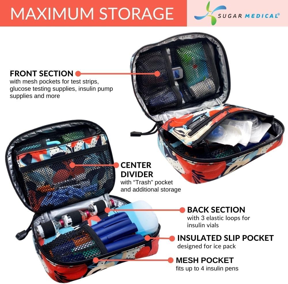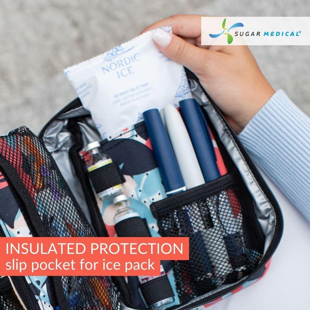 EXTRA SPACIOUS DIABETES SUPPLY ORGANIZER - Need space? We've got plenty in this insulted diabetes supply case! Tuck all your diabetic medical supplies away in a one secure, all-encompassing diabetic organizer. Sugar Medical's Insulated Diabetes Supply Organizer is made to 8'W x 5.5"H x 2.5” D dimensions, ensuring you'll have more than enough room to store all your diabetic essentials. TSA Approved diabetes supply travel bag