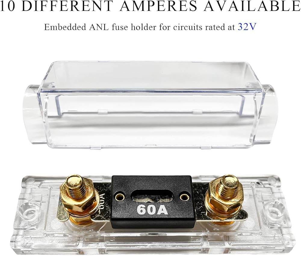 【Versatile Compatibility】: The fuse holder comes with various fuse ratings (from 30A to 300A), making it suitable for a wide range of applications, including car audio systems, alarm systems, and automotive amplifiers. Therefore, you can find the right fuse for different power requirements.