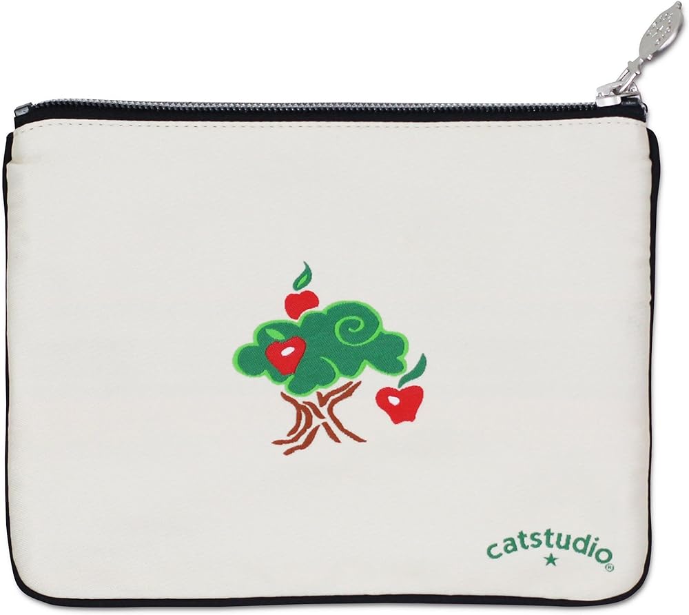 DURABLE & VERSATILE: Crafted with luxe poly fabric that resists dirt, stains, shrinking, and stretching, this pouch is designed to last. It's a dependable addition to your travel essentials, purse essential, gift card holder, toiletry bag or makeup organizer. Lined with signature Catstudio Collegiate Collection black patterned lining.