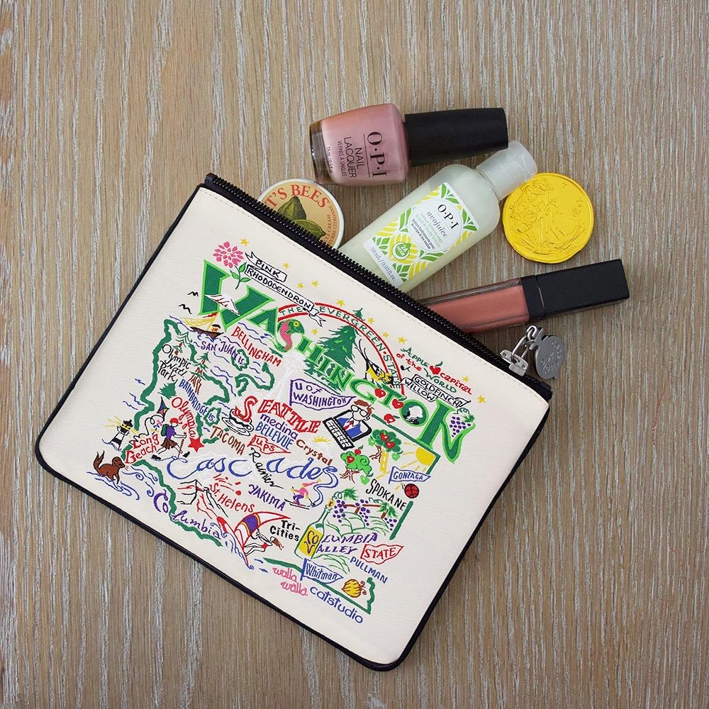 NATURAL CALIFORNIA ZIP POUCH: Our hand-drawn, original artwork is intricately woven (not merely printed) onto this versatile travel accessory. Featuring The Golden State's iconography to capture the landmarks and details only insiders know are featured An ideal California gift or souvenir for lovers of the Golden State.
